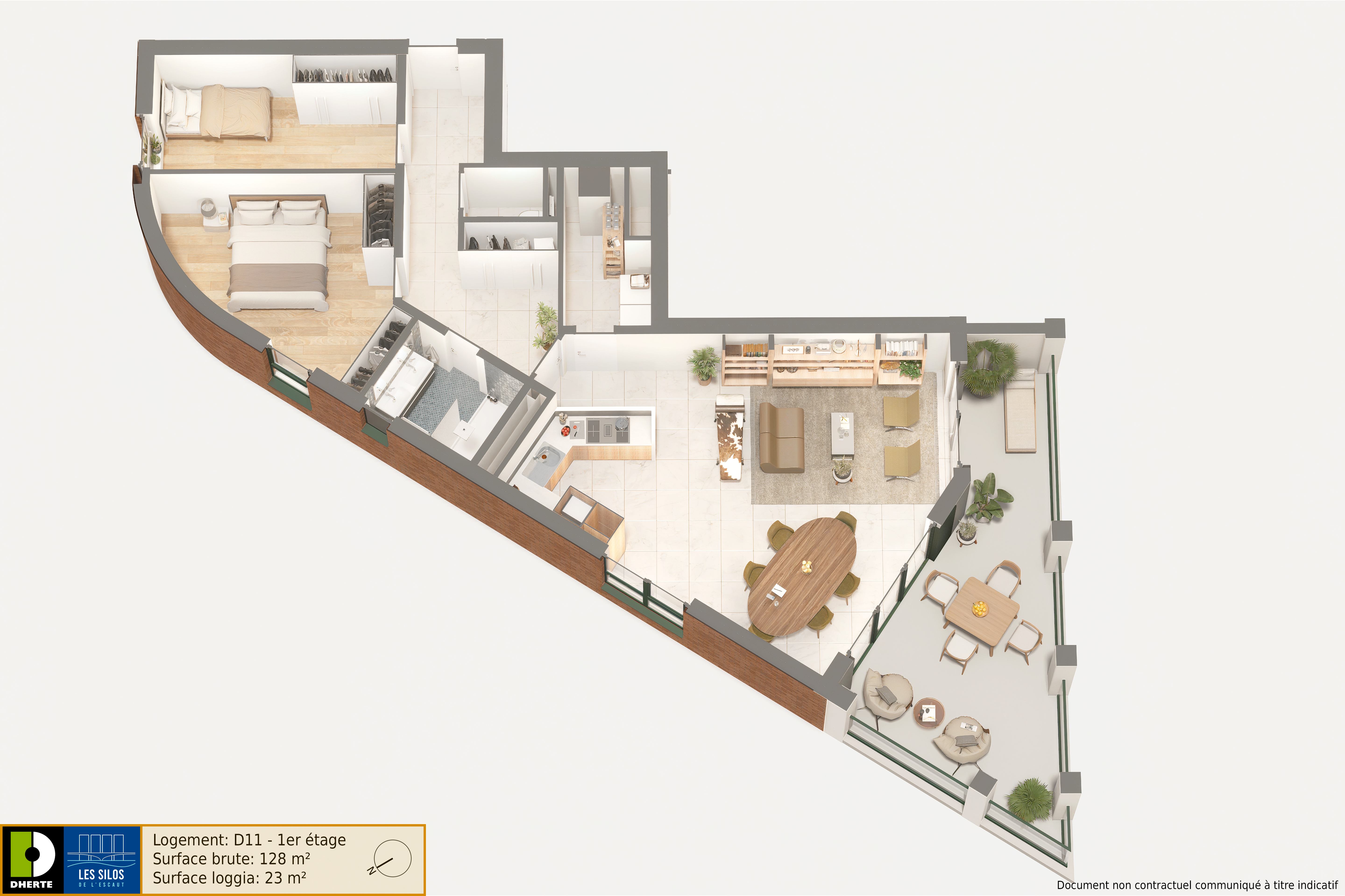 Les Silos de l’Escaut est un projet résidentiel d’exception à Tournai, porté par Dherte SA, promoteur-contructeur reconnu dans la région. Situé en bordure de l’Escaut, sur un site industriel réhabilité, il propose 75 appartements 1, 2 et 3 chambres (de 55 à plus de 150 m²), répartis sur 4 blocs, dont plusieurs penthouses avec vues panoramiques et grandes terrasses.